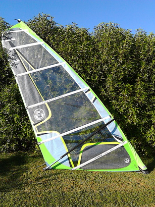 También tengo una vela de 5m, con mástil 3. 8m, pie de mástil, botavara, arnés. Por 120 Euros más.
