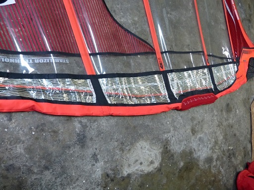 Usa un mastil 460, con alargador de 4cm y una botavara 211; con 3 cambers.