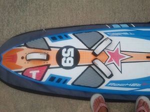 Tabla en buen estado,solo tiene una reparación en la proa realizada por un profesional. tabla muy polivalente. Esta en su peso. Edicion carbono. con funda con las cremalleras rotas,portes ha cargo del comprador.la tabla es del 2006 o 2007