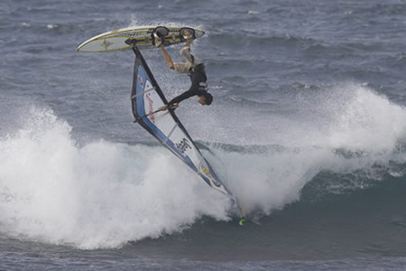 Ya desde los primeros heats, el rider español destacó en el agua clavando con facilidad sus backloops retorcidos pero fue en la eliminatoria doble donde demostró toda su soltura y estilo. Primero se deshizo de Greg Allaway realizando algunos aereos grapando la popa y un buen 360.