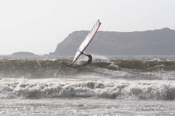 La playa de Essaouira se extiende más de 4km y disfruta de los vientos aliseos que aumentan de intensidad y frecuencia en los meses centrales del verano. El viento de derecha side-offshore llega hasta F7 y más en este período.